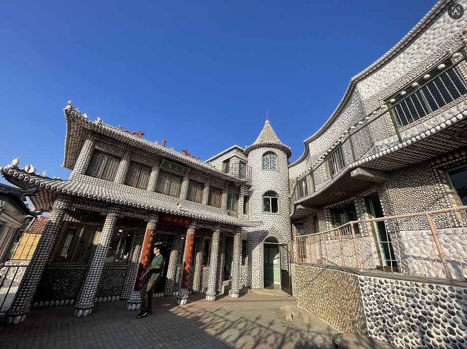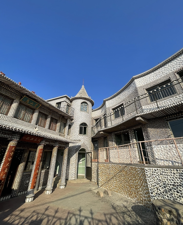 3、外墙、屋顶及地面镶嵌100万枚贝壳(含珍稀品种如砗磲贝、蜘蛛螺),覆盖面积达1500平方米,已申请吉尼斯世界纪录。